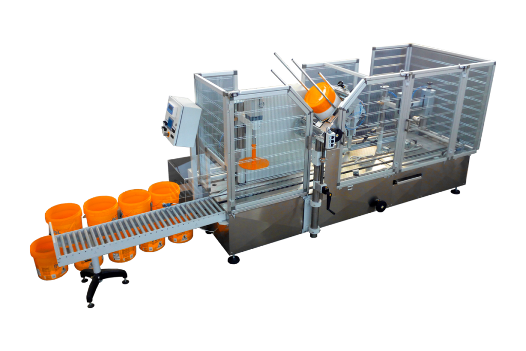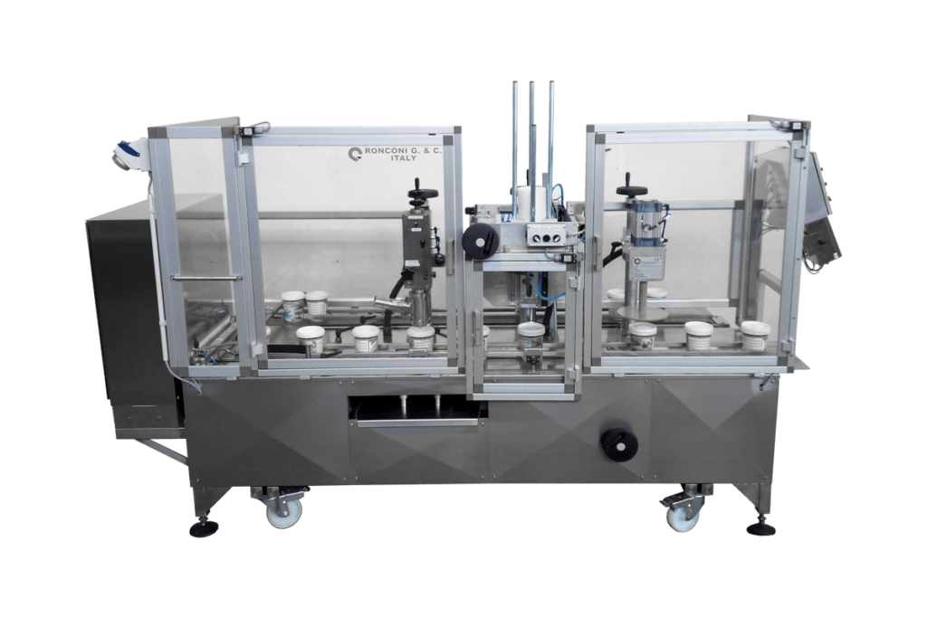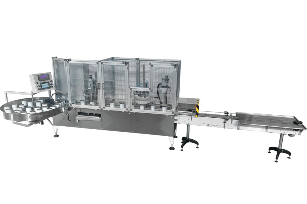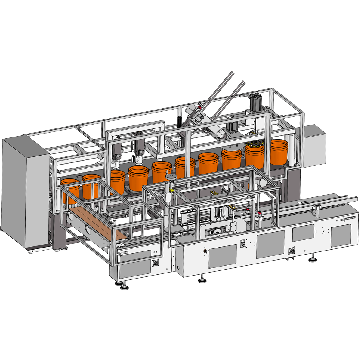 - lid placing station (for plastic and/or metal lids) adjustable for the various formats, with automatic system for taking lids and placing them on the container