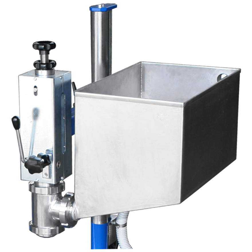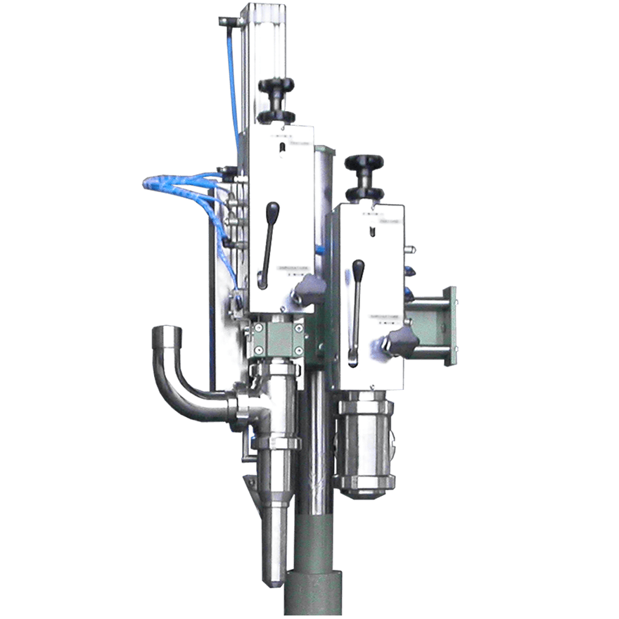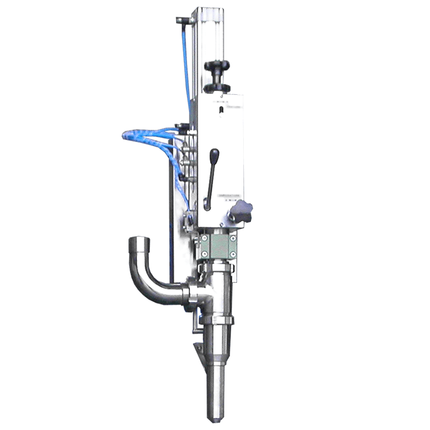 - nozzle introduction slide inside the filling hole with drop collection system and suction